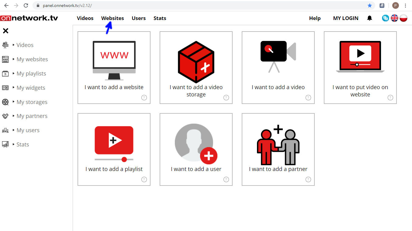 Choose My websites from top bar menu: