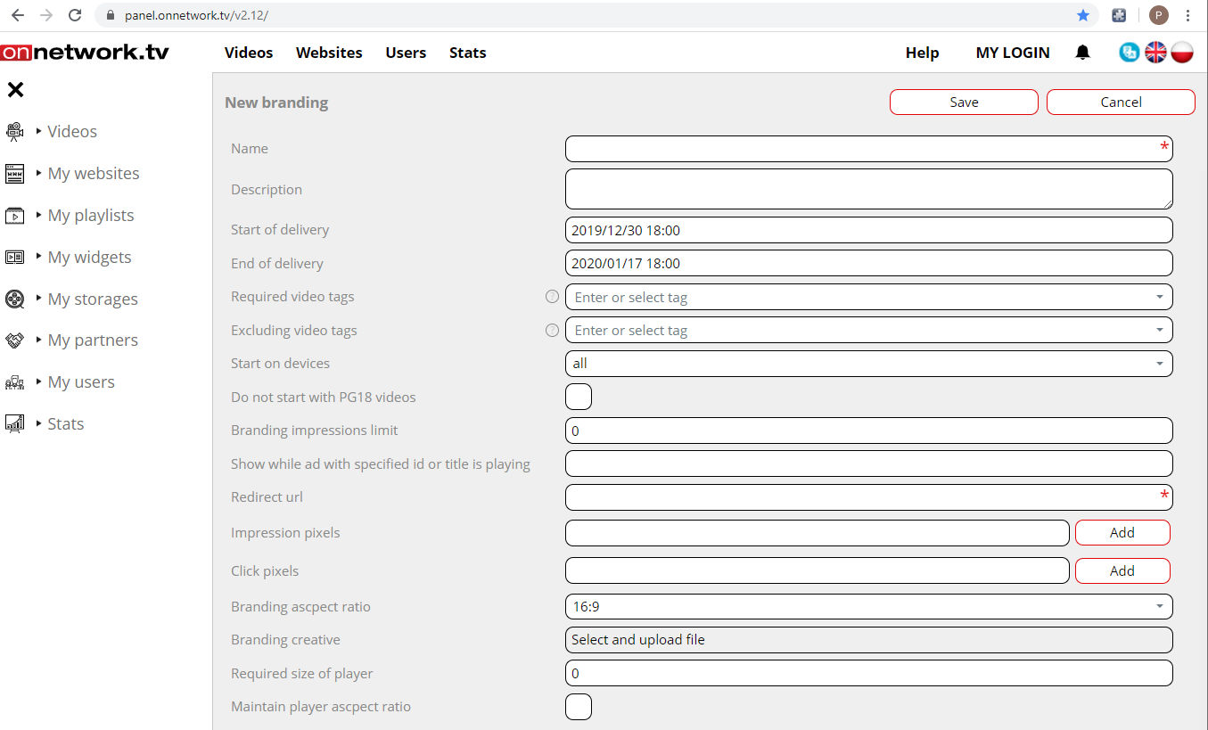 Branding aspect ratio - branding will be delivered only on matching player aspect ratio.