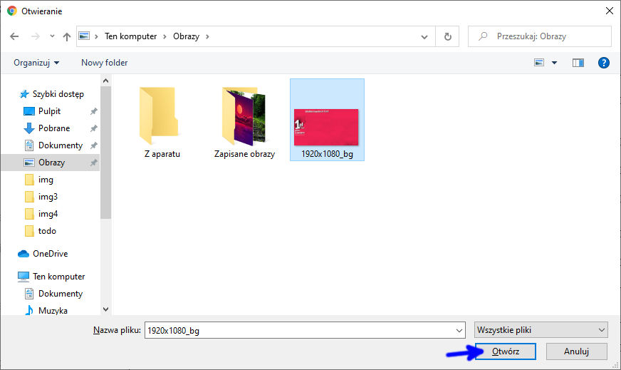 Choose graphical file to upload. Click open (blue arrow):