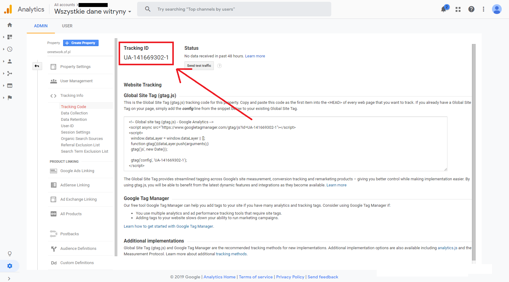 1.1.Here is where you can find the "Tracking ID", copy it.