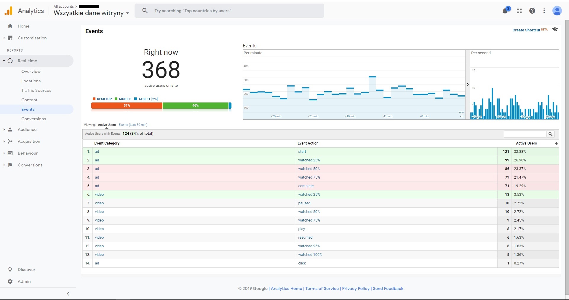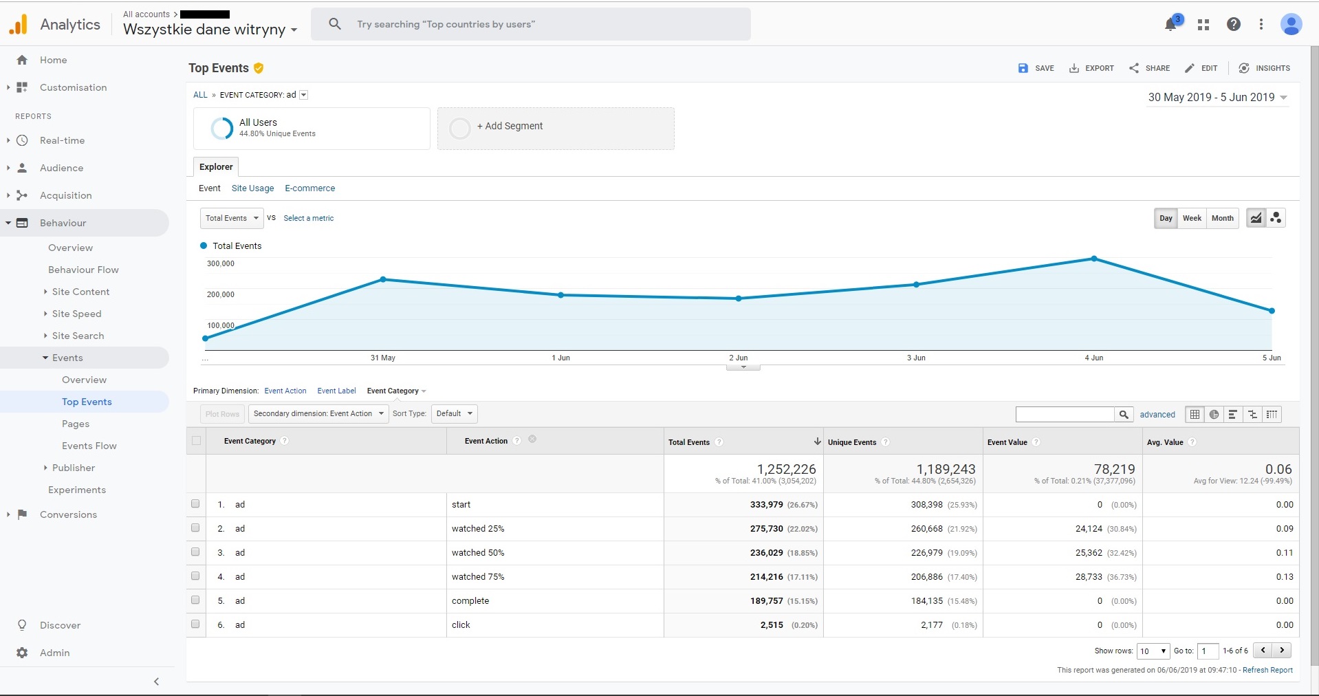 On our platform you can easily connect GA with our player so you can additionally collect events such as: